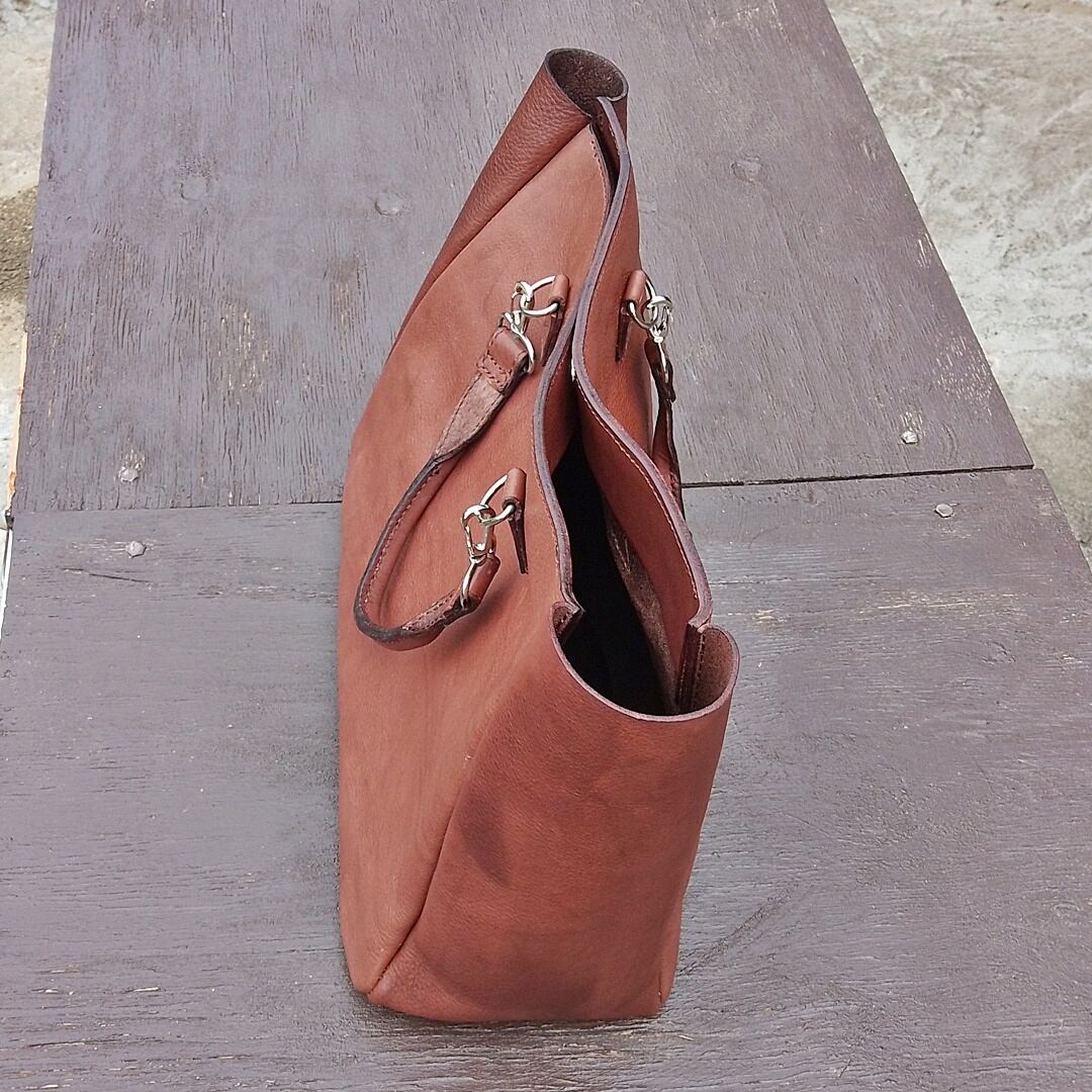 ワイドトートバッグ 男女兼用 本革 ヌメ革 サドルレザー